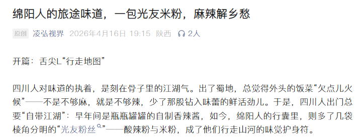 轉(zhuǎn)載凌弘視界 綿陽人的旅途味道,一包光友米粉,麻辣解鄉(xiāng)愁