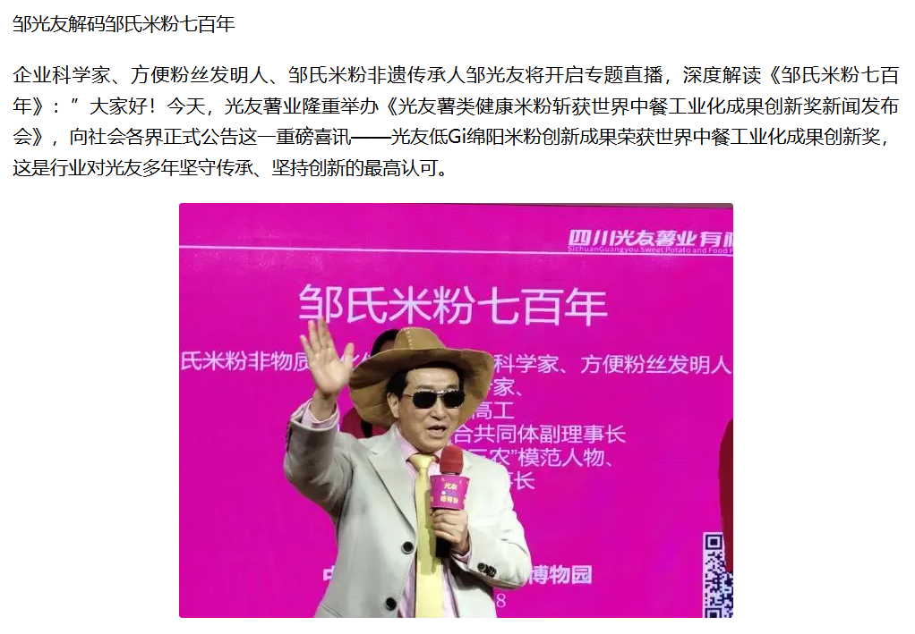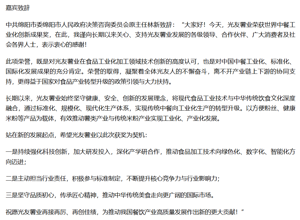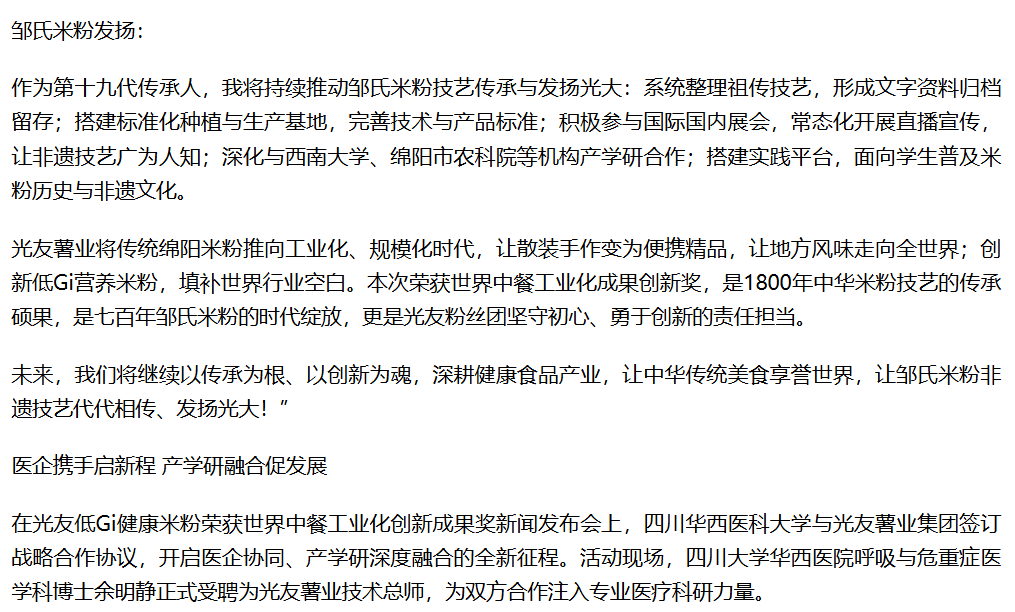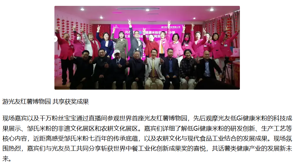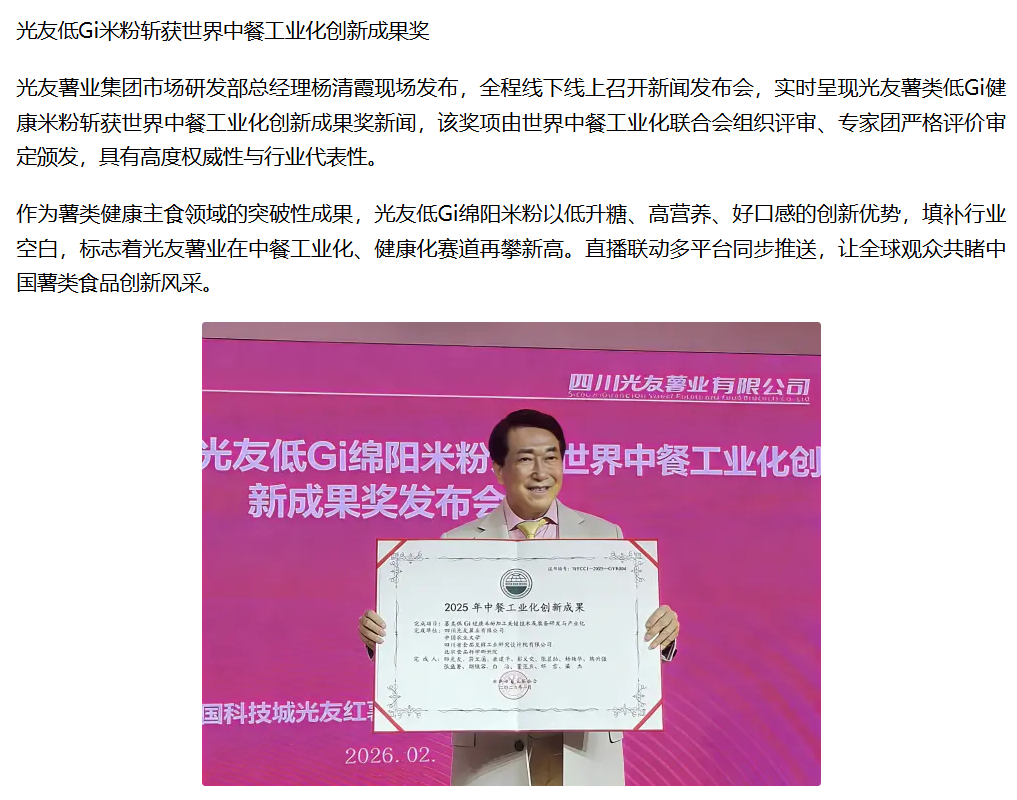 轉(zhuǎn)載鳳凰網(wǎng):光友低Gi健康米粉獲世界中餐工業(yè)化創(chuàng)新成果獎新聞發(fā)布會圓滿召開
