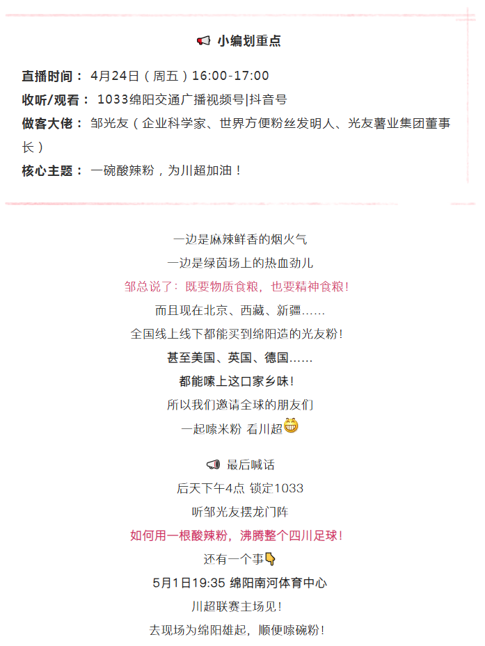 轉(zhuǎn)載103.3 注意!后天(4.24)下午四點,頭號“川超粉絲”有話說