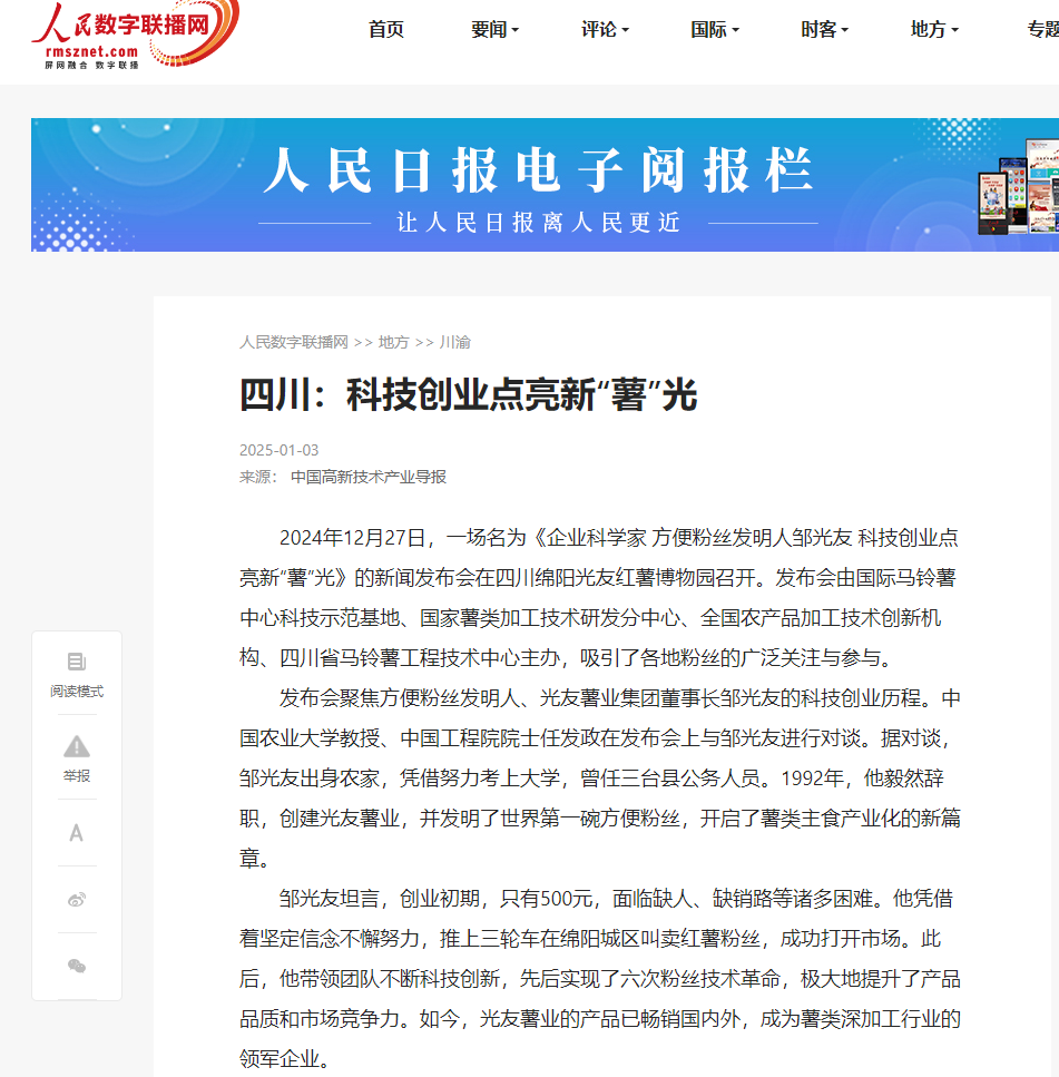 轉(zhuǎn)載人民數(shù)字聯(lián)播網(wǎng)——四川:科技創(chuàng)業(yè)點亮新“薯”光