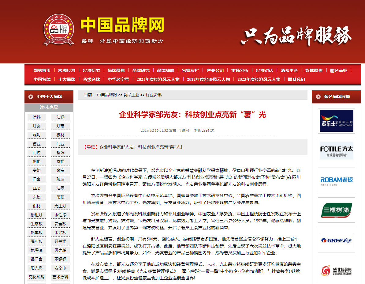 轉載中國品牌網(wǎng)——企業(yè)科學家鄒光友:科技創(chuàng)業(yè)點亮新“薯”光