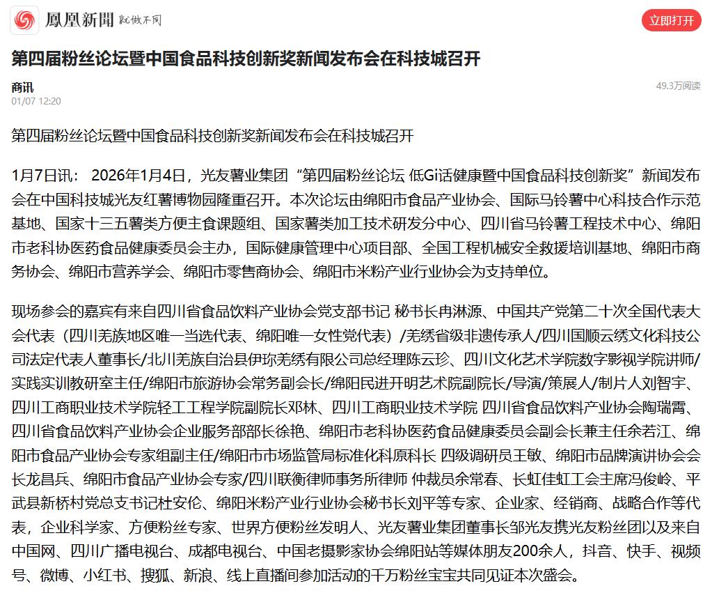 轉(zhuǎn)載鳳凰網(wǎng) 第四屆粉絲論壇暨中國(guó)食品科技創(chuàng)新獎(jiǎng)新聞發(fā)布會(huì)在科技城召開(kāi)